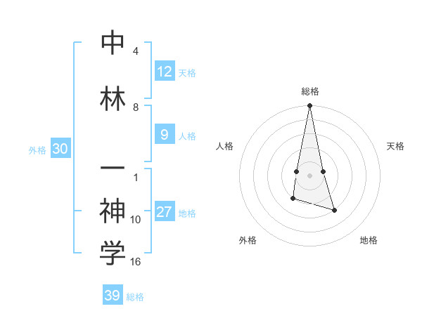 中林 一神学さんの総格は39画の5点!