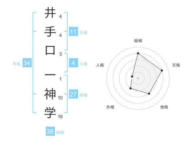 井手口 一神学さんを姓名の画数から五運を鑑定