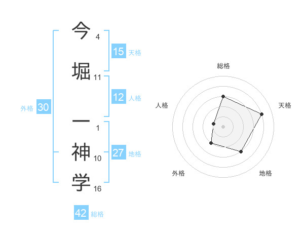 今堀 一神学さんを姓名の画数から五運を鑑定