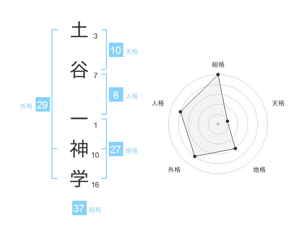 土谷 一神学さんの総格は37画の5点!