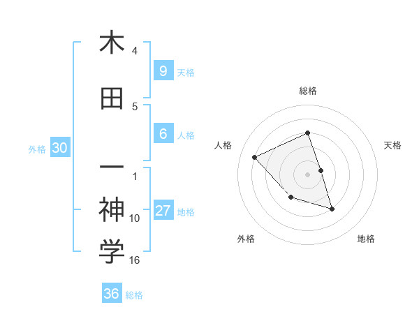 木田 一神学さんの地格は27画の3点!