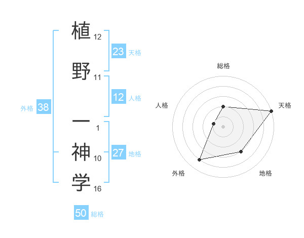 植野 一神学さんの総格は50画の2点!