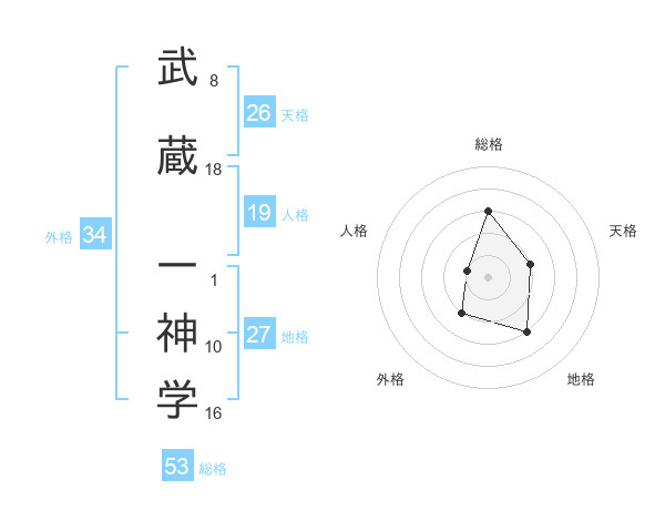 武蔵 一神学さんを姓名の画数から五運を鑑定