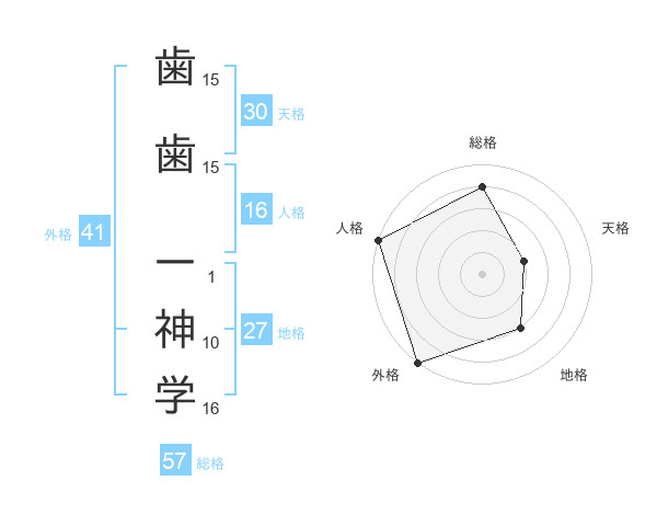 歯歯 一神学さんを姓名の画数から五運を鑑定