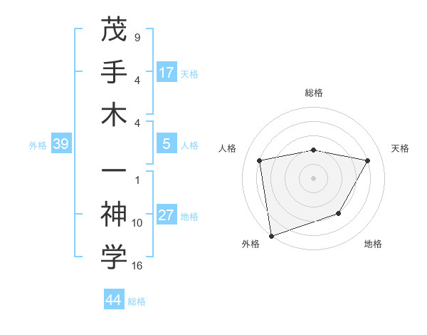 茂手木 一神学さんを姓名の画数から五運を鑑定