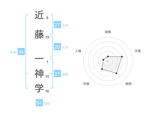 近藤 一神学さんを姓名の画数から五運を鑑定