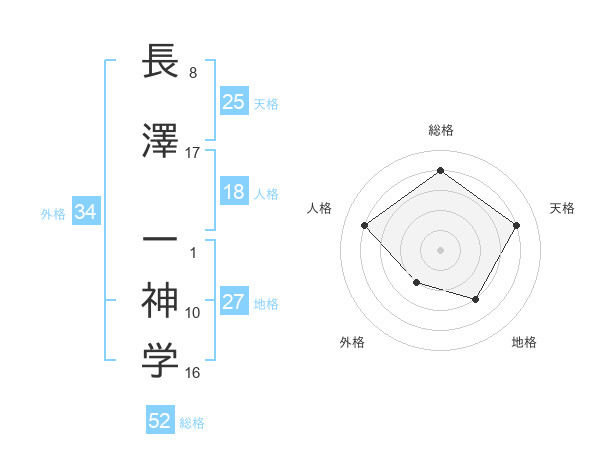 長澤 一神学さんを姓名の画数から五運を鑑定