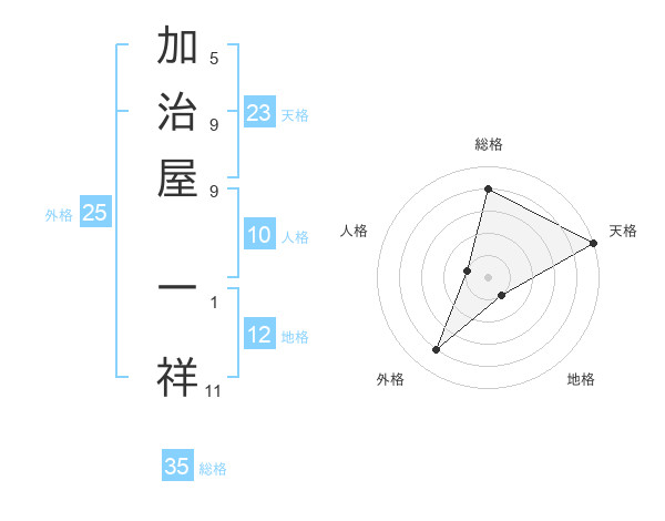 加治屋 一祥さんの総格は35画の4点