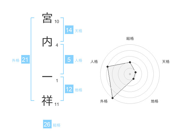 宮内 一祥さんの総格は26画の2点!