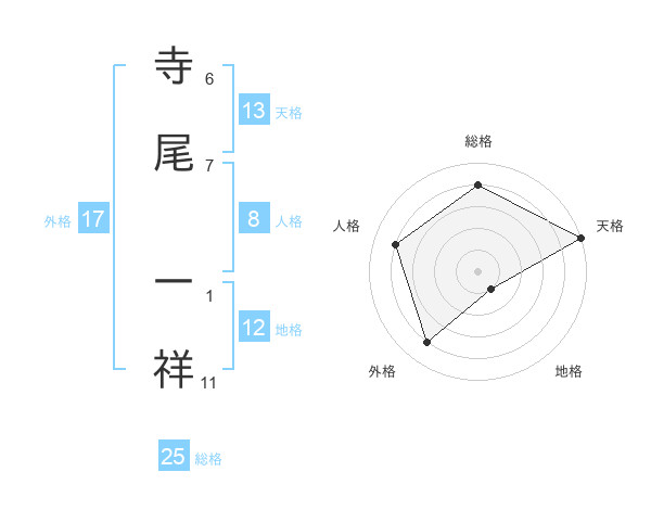 寺尾 一祥さんの天格は13画の5点!
