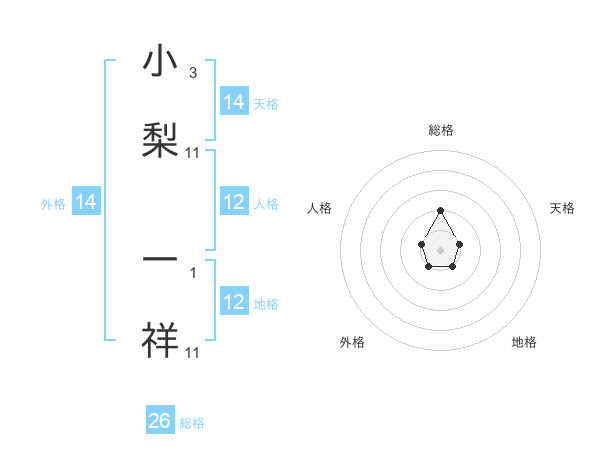 小梨 一祥さんを姓名の画数から五運を鑑定