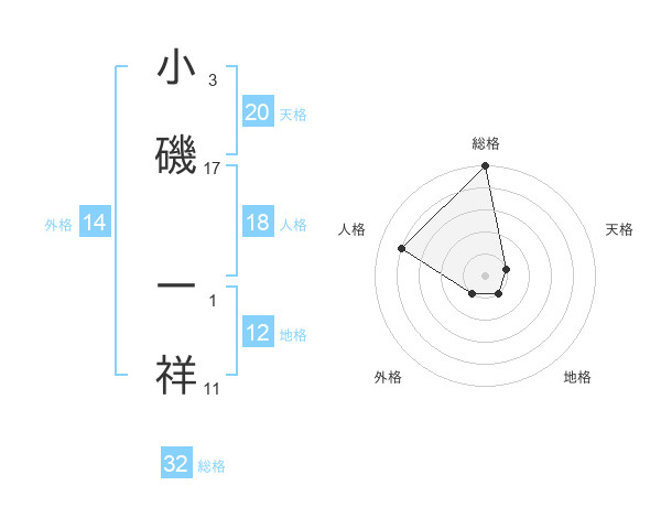 小磯 一祥さんの総格は32画の5点!