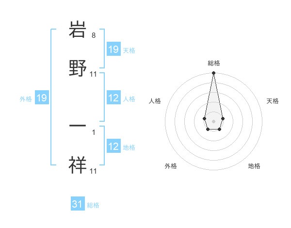 岩野 一祥さんを姓名の画数から五運を鑑定
