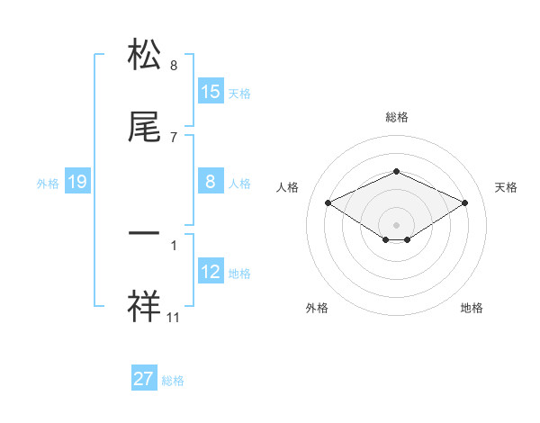 松尾 一祥さんの総格は27画の3点!