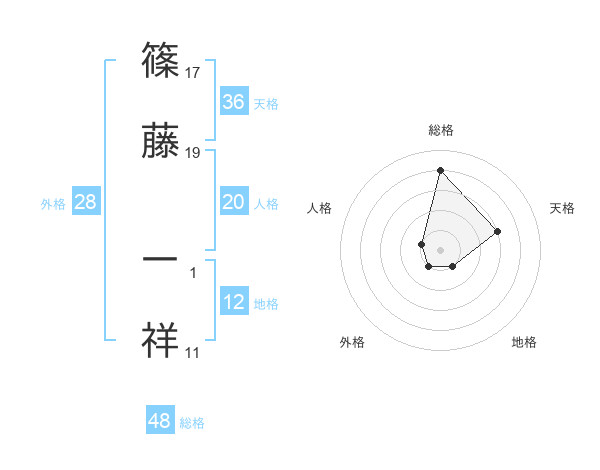 篠藤 一祥さんの総格は48画の4点!