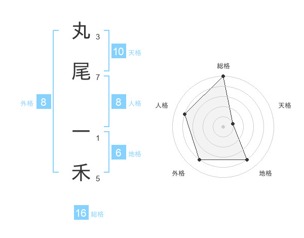 丸尾 一禾さんの総格は16画の5点!