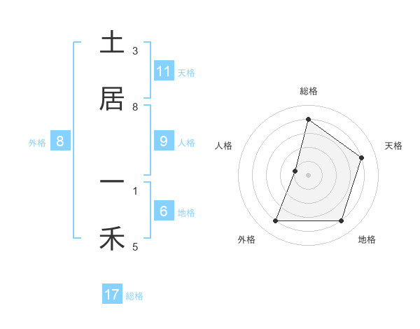 土居 一禾さんの総格は17画の4点!