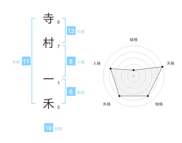 寺村 一禾さんの天格は13画の5点!