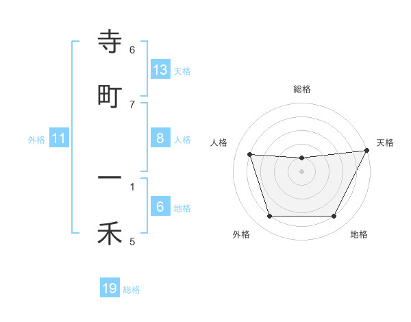 寺町 一禾さんの天格は13画の5点!