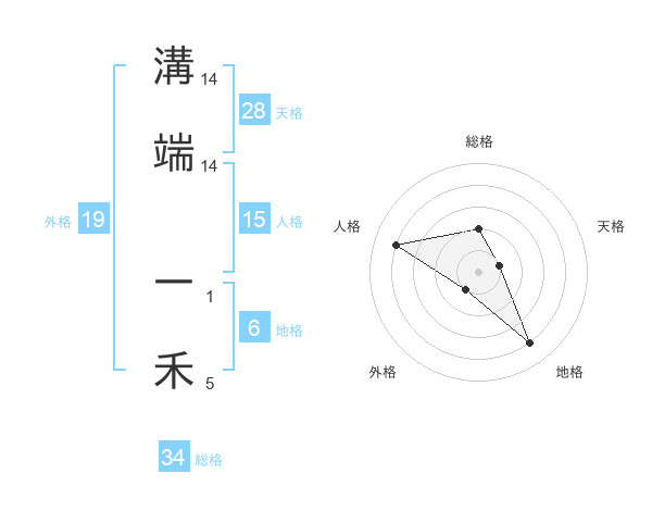 溝端 一禾さんの総格は34画の2点!