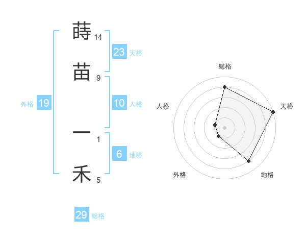 蒔苗 一禾さんを姓名の画数から五運を鑑定
