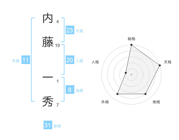 内藤 一秀さんの総格は31画の5点!