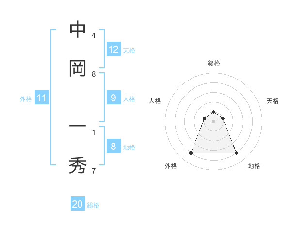 中岡 一秀さんを姓名の画数から五運を鑑定