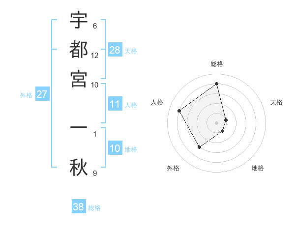宇都宮 一秋さんを姓名の画数から五運を鑑定