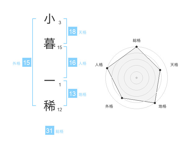 小暮 一稀さんの総格は31画の5点!