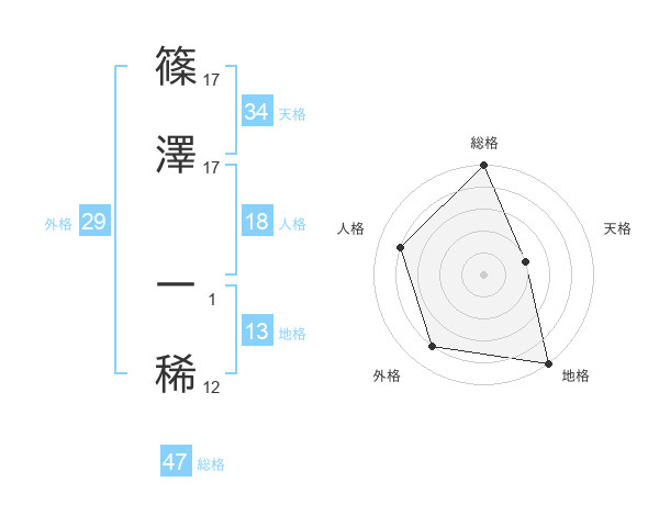 篠澤 一稀さんの総格は47画の5点!