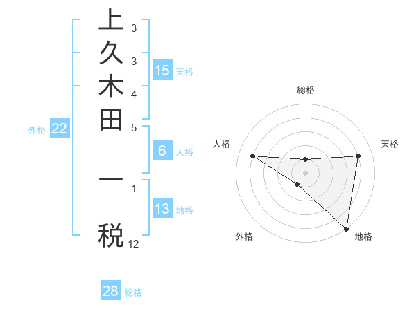 上久木田 一税さんを姓名の画数から五運を鑑定