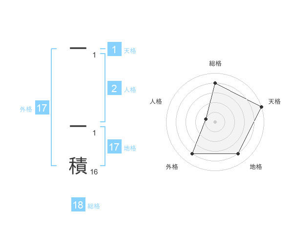 一 一積さんの地格は17画の4点!