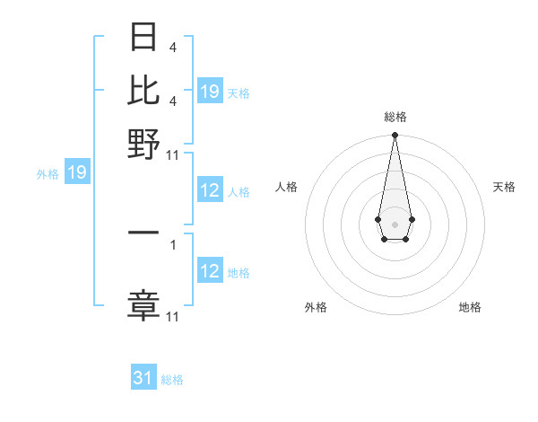日比野 一章さんの総格は31画の5点!