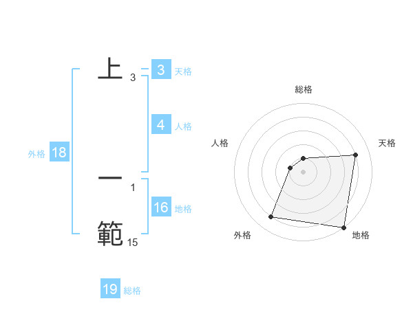 上 一範さんの外格は18画の4点!
