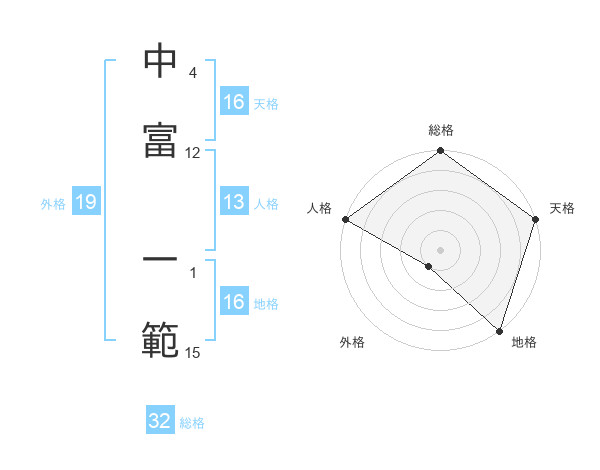 中富 一範さんの総格は32画の5点!