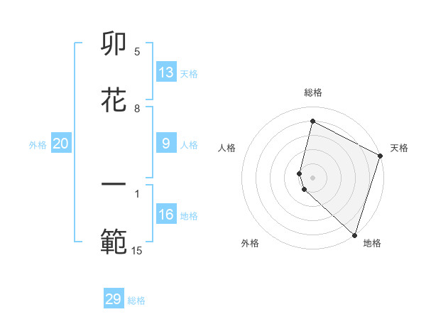 卯花 一範さんの総格は29画の4点!
