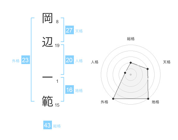 岡辺 一範さんを姓名の画数から五運を鑑定