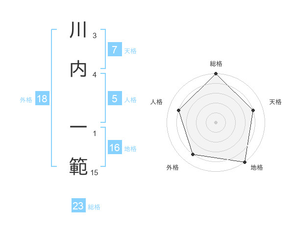 川内 一範さんの総格は23画の5点!