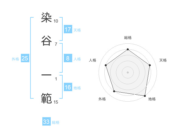 染谷 一範さんの天格は17画の4点!
