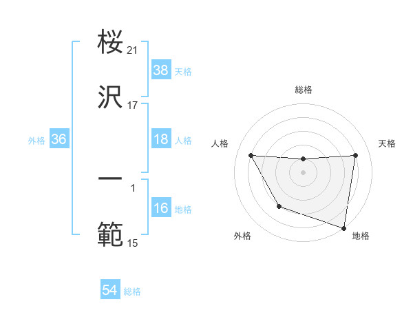 桜沢 一範さんの天格は38画の4点!