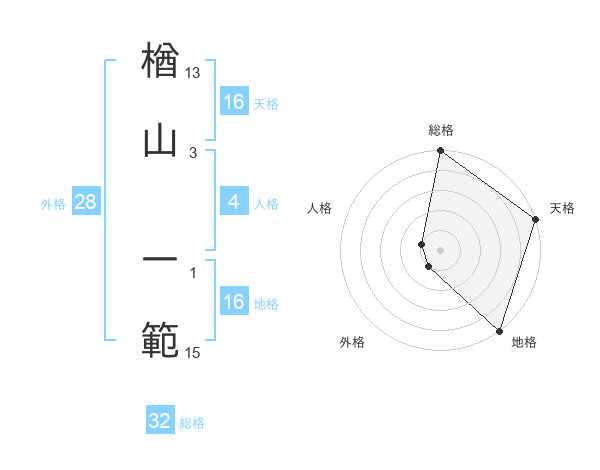 楢山 一範さんの天格は16画の5点!