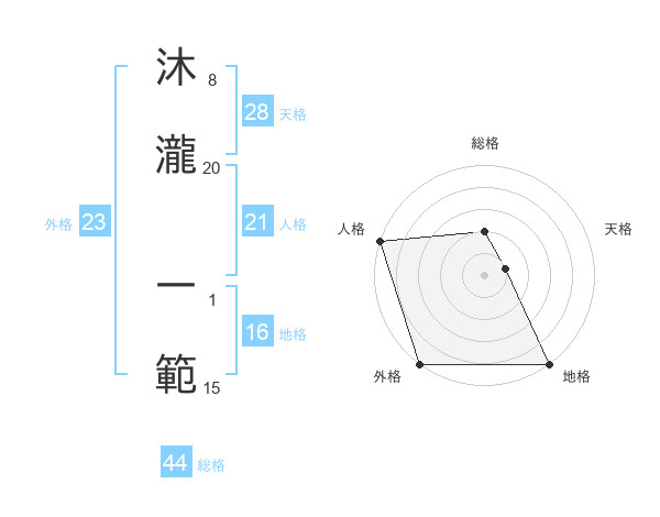 沐瀧 一範さんを姓名の画数から五運を鑑定