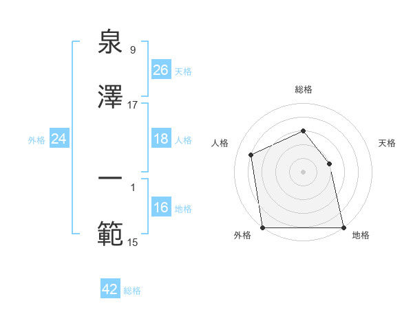 泉澤 一範さんを姓名の画数から五運を鑑定
