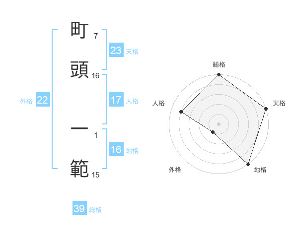 町頭 一範さんの総格は39画の5点