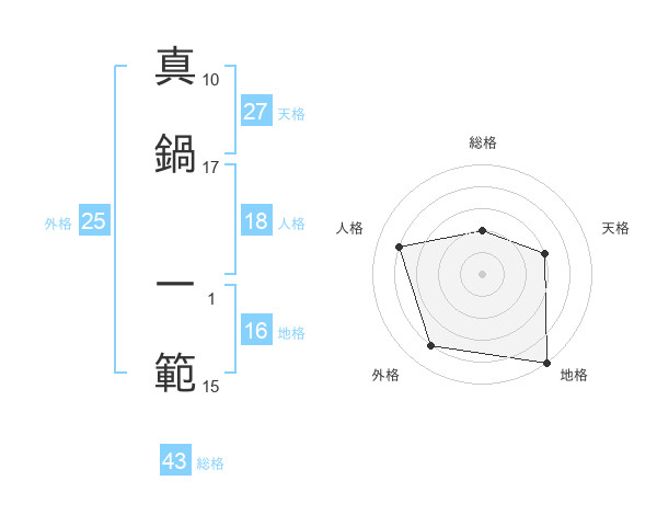 真鍋 一範さんを姓名の画数から五運を鑑定
