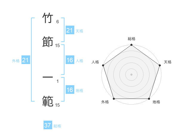 竹節 一範さんの総格は37画の5点!