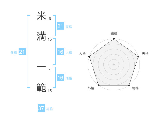 米満 一範さんの総格は37画の5点!