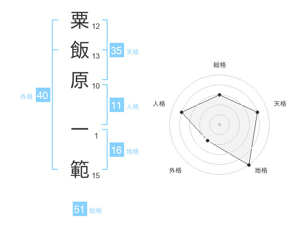 粟飯原 一範さんの総格は51画の3点!