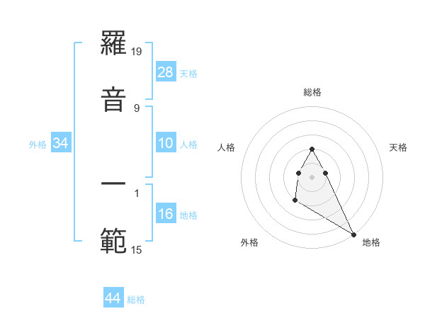 羅音 一範さんの総格は44画の2点!