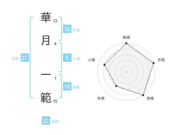 華月 一範さんの天格は16画の5点!